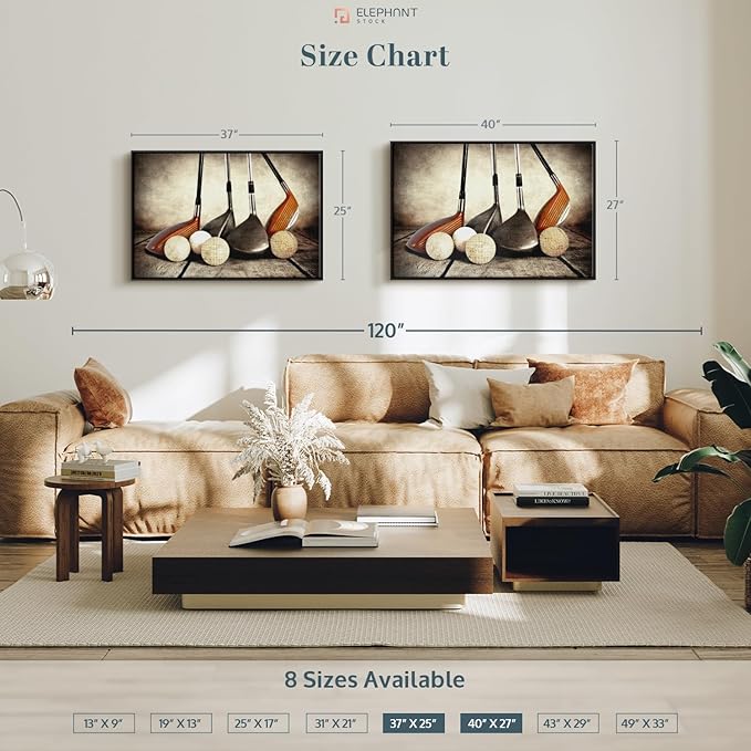 - Durable Canvas Features - Our long-lasting other sports 1-Piece canvas is made from a non-fading UV and Humidity-resistant 330 GSM Polyester Canvas. This Golf Sets canvas can be used as a masculine mancave wall art.