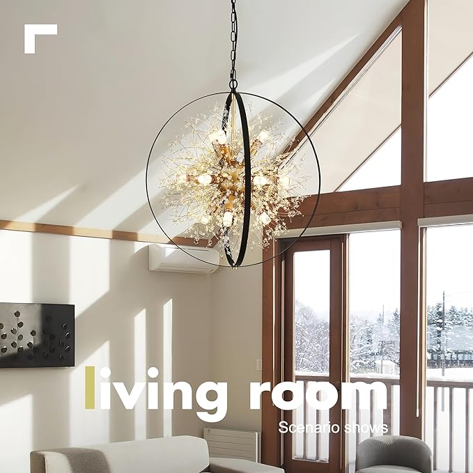 - 【Compatible with Various Bulbs】Sputnik Light Fixture features compatibility with dimmer,12 E12 bulbs base (Switches and Bulbs NOT Included). You can also install LED, Incandescent, or CFL bulbs. The Black and Gold Chandelier will create an enchanting light that illuminates your space with a cozy and warm atmosphere.