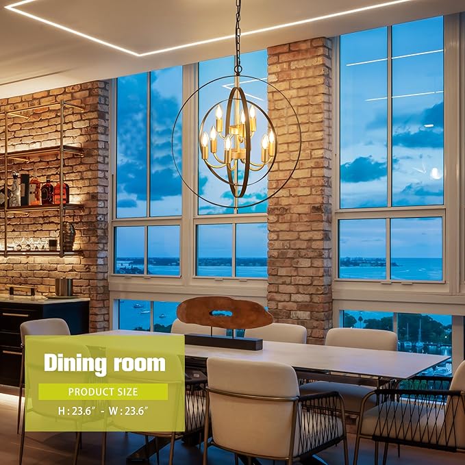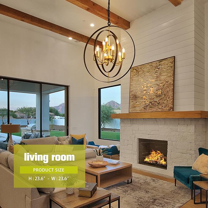 - 【Unique Design】Metal globe chandelier with adjustable round shade, by rotating the circle, you will get round chandeliers of different shapes. The vintage and black gold design will add a fashionable look, while complementing your rooms decor. suitable for living room, dining room, hallway, bedroom, kitchen island, etc.