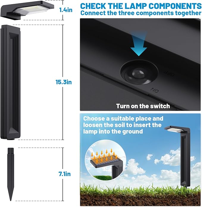 - ✅【Cordless Easy Installation & Warranty】Sunvivo outdoor solar path lights are so easy to install,just need to connect the three parts and insert to the ground.It’s perfect guide light or decorative light for your various outdoor places such as lawn,garden,yard,driveway,sideway,path,walkway or at outdoor event or party. 2-year warranty offered.