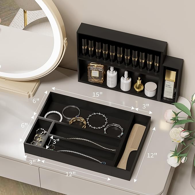 - Multi-functional Drawer Organizer Tray - Say goodbye to having multiple messy junk drawers and always having to dig deep for any needed items. Used in kitchen to organize silverware, spoons, spatulas, whisks, wine stoppers, bottle openers, bag clips, spices and other kitchen gadgets; used as bathroom vanity tray to keep perfume, candle, jewelry, trinket, watch, key neatly; or used as desk drawer organizer bins to accommodate your desk supplies, like pens, pencils, business cards, post-its, paper clips etc.