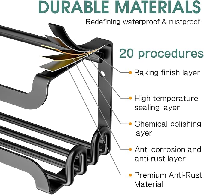 - Sturdy Spice Rack with 16 Hooks - The premium metal cabinet door spice rack is meticulously crafted with powder-coating for enhanced durability and rust resistance. The pantry door spice rack organizer comes with 2 hooks on both sides(4 pack total 16 hooks), so you can easily hang bottle openers, scissors and some other light items.Purpose-built to ensure practicality, versatility, and strength, our wall mount spice rack for cabinet door can be safely used in domestic and commercial spaces