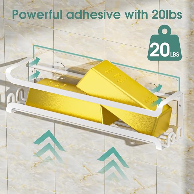 LUCYCAZ 4 Pack Wall Mounted Spice Rack with 16 Hooks, Spice Organizer Shelf for Stove Cabinet Pantry Door,Screw or Adhesive Spice Shelf Hanging Wall Spice Rack in Kitchen and RV (White, 4 PACK)