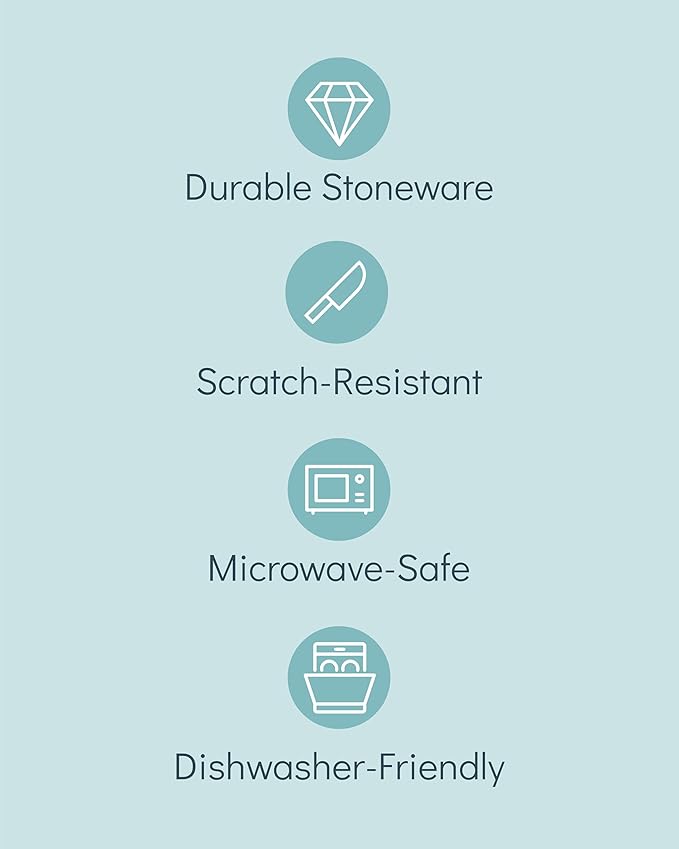 - ✅ DURABLE QUALITY THAT LASTS: Each piece is crafted from high-quality stoneware with a fired, glazed, and scratch-resistant finish, perfect for those who appreciate durability and sophisticated style in their dinnerware.