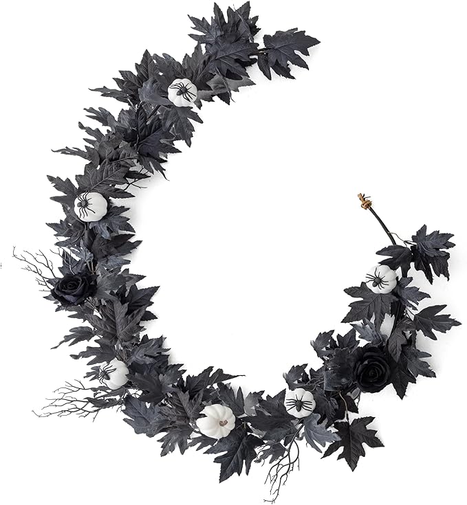 MISSPIN 6FT Black Maples Leaf Garland, Halloween Fall Leaf Garland Artificial Hanging Black Maple Autumn Vine Fall Decor Maple Thanksgiving Halloween Home Decor