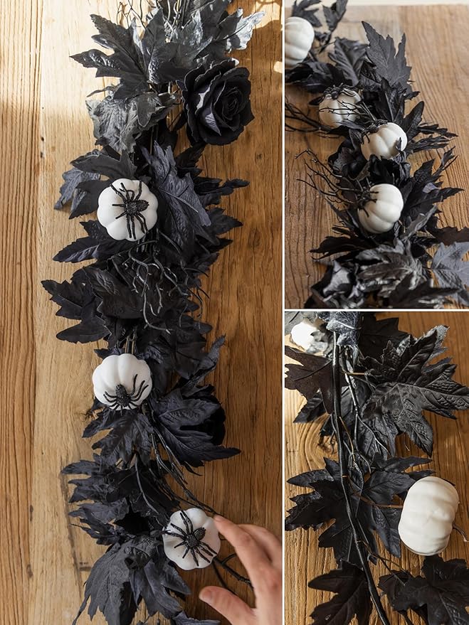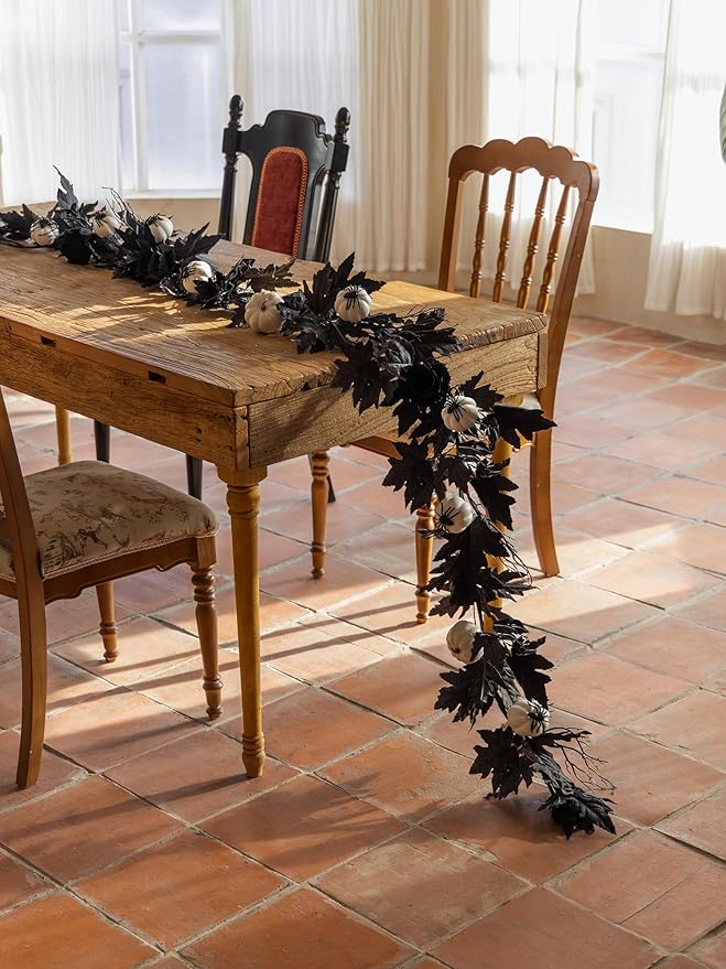 - 【FALL DECOR】The artificial Black Leaf Garland on the autumn garland decoration add natural beauty and rich colors. And the design of maple leaves is integrated into it, emphasizing the theme of autumn more, making it more seasonal. It will add a rich autumn atmosphere to your home, wedding, or party.