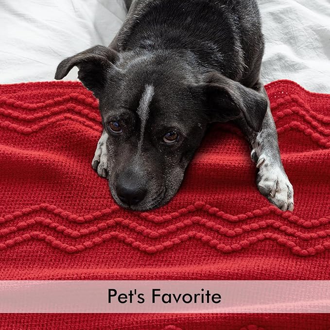 MIULEE Red Knitted Throw Blanket for Couch Boho Textured Cozy Woven Blanket with Tassels for Sofa Chair Bed Living Room Acrylic Wave Pattern 60"x80"