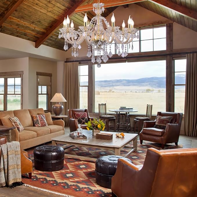 - This is a modern and luxurious golden transparent crystal chandelier with candle style 10 lamp arms, and over 90% of the entire lighting accessories are made of crystal. When the light comes on, the entire crystal shines brightly, showcasing modern luxury and bringing a luxurious and warm style to your home.
