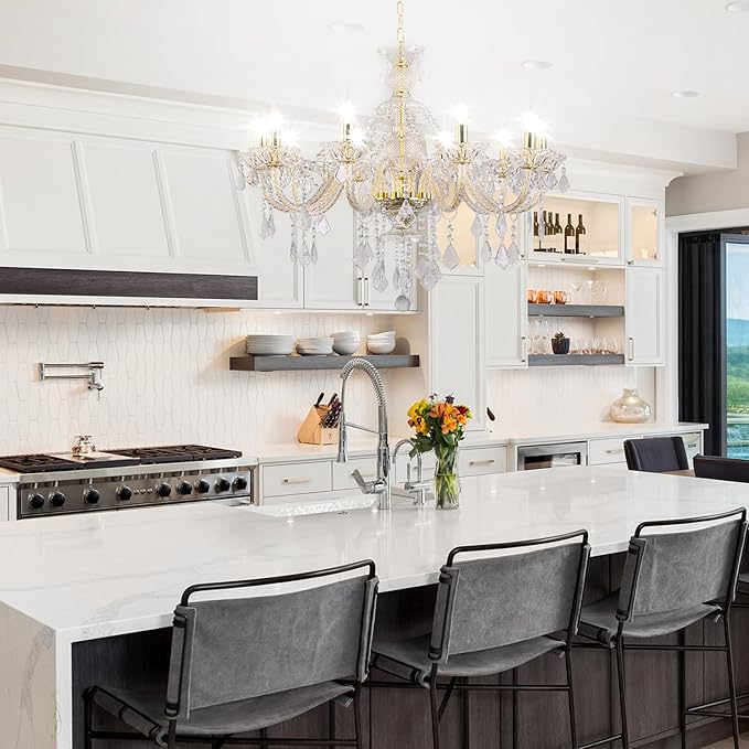 10-Light Crystal Chandelier Clear K9 Crystal Luxury Ceiling Light Fixture Flush Mount Pendant Lighting for Living Room Dining Room Bedroom Kitchen Hallway Entryway