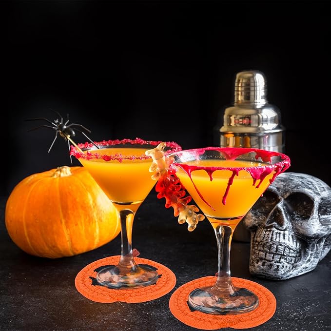 - Pumpkin Design - Our drink coasters featuring Halloween theme, designed in the shape of pumpkin and patterned with various funny expressions, colored in orange and black, vivid and delicate, will nicely increase the fun and festive atmosphere.