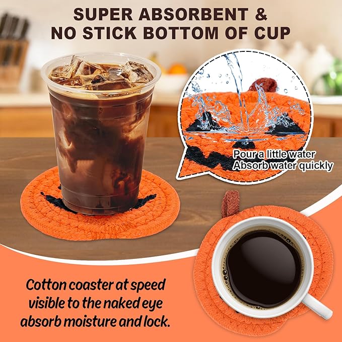 - Wonderful Decoration - Our pumpkin cotton coasters can be applied in various occasions including home, kitchen, hotel, bar, cafe, restaurant, office and many other scenes, will also be great gifts and decorations in Halloween, holiday, birthday and more, adding festive atmosphere.
