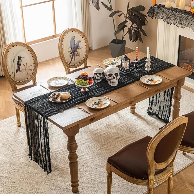 Sioloc Black Cheesecloth Table Runner Fall Autumn Decor for Home 10ft Table Cloth for Wedding Birthday Party Halloween Thanksgiving Decorations