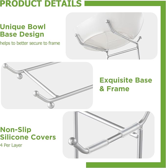 - 【Rock-Solid Stability System】: Features 4 non-slip silicone covers per tier that grip bowls securely. Holds fruits firmly with zero wobbling, even when fully loaded as a large fruit bowl.