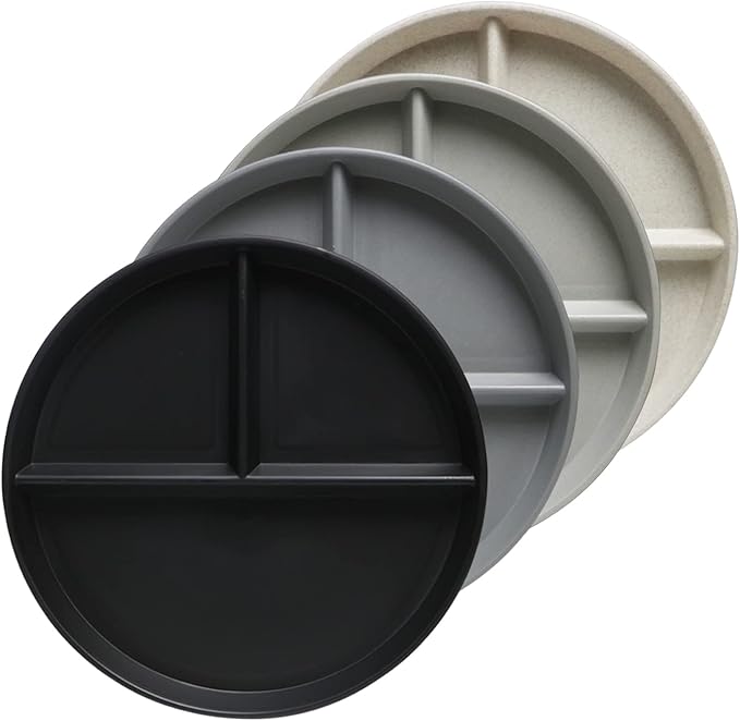 - Greenandlife 10 INCH PREMIUM DIVIDED PLATES: Our reusable plate set including: 10 Inch Compartment Plates x 4 (Black, Dark Grey, Light Grey, Beige). Larger size and deeper depth, so more capacity. The unique gray and black dishes make your dining table look more elegant. Stackable design and light weight make it easy to store and carry. They are not only suitable for home and kitchen use, but also convenient for RVs, camping, traveling, picnics, parties, dorms, schools and offices