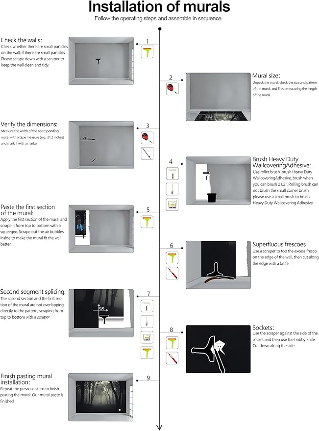 - Warm tip: This mural is not peel and stick, you need to buy your own glue, it is recommended to use Heavy Duty Wallcovering Adhesive.
