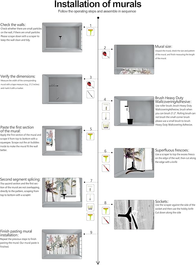 - Warm tip: This mural is not peel and stick, you need to buy your own glue, it is recommended to use Heavy Duty Wallcovering Adhesive.