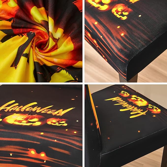 - 【🎃🎃🎃Premium Halloween Chair Covers】- This halloween chair covers are made of durable and high persistence polyester and stretchy spandex fabric, soft, comfortable and wrinkle resistant, no ironing required; Stretchable Material,stretch that recovers quickly,secure fit with sewn-in elastic hem.