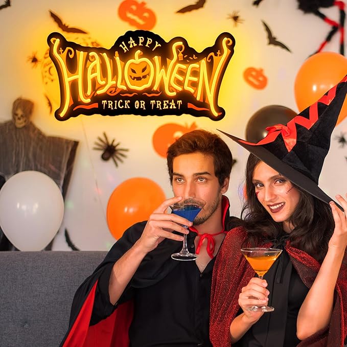 - Halloween Decor - The LED neon light sign is a beautiful Halloween decoration neon light. Use it to decorate your space and create a unique Halloween atmosphere. It is perfect for placing on walls in bedrooms, living rooms, bars, cafes, restaurants, hotels, shops, man caves, and more. It also makes a great gift for Halloween parties, Christmas, New Year, and other festive occasions. It's a Halloween gift that you can give to friends, fathers, mothers, boys, and girls.