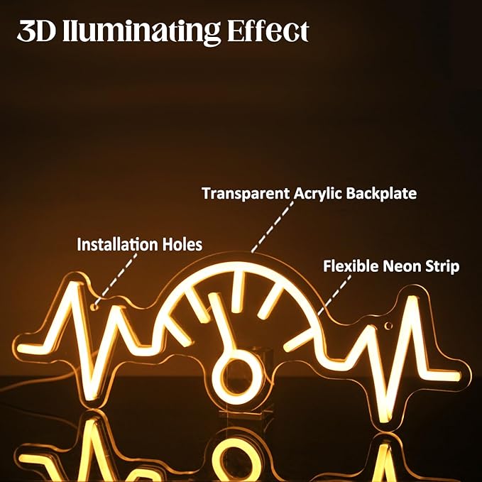 - 【Easy to Install】There are two circular hanging holes on the backplate, which is convenient for you to hang automobile speedometer neon sign anywhere you want. Neon car sign adopts 5V low-voltage advanced electrode system.
