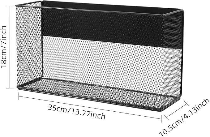- Multi-purpose: The magnetic basket for fridge measuring 13.77" × 4.13" ×7.08 inches can not only store paper, magazines and newspapers, but also office supplies such as markers, pens, scissors, etc. It can also store condiments, preserving film, cereal boxes and other kitchen supplies
