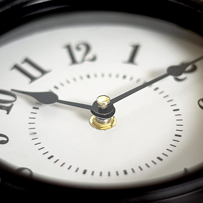 Vintage Decorative Desk and Shelf Clock, Rustic Mantel Clock Farmhouse Clock,Black Table Clock on Stand, Silent Non-Ticking 10.3 * 7.3 inch