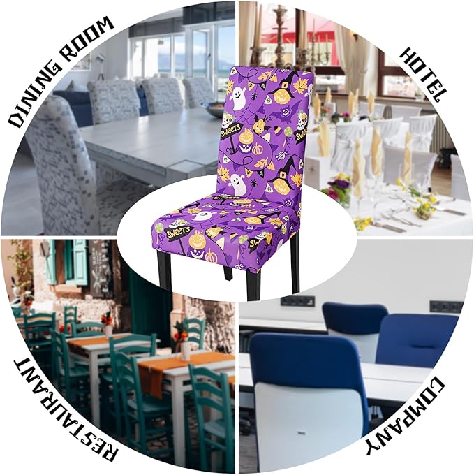 - 【🎃🎃🎃Versatile Halloween Essential】- The Christmas kitchen chair covers fit for most of parsons chair. Christmas dining room chair covers can be used for hotel,wedding banquet, dinner, meeting, celebration, ceremony, family dining room Christmas decoration. Whether you're decorating for a Halloween-themed wedding, a haunted house party, or simply adding some festive touches to your home, our slipcover is a versatile choice.