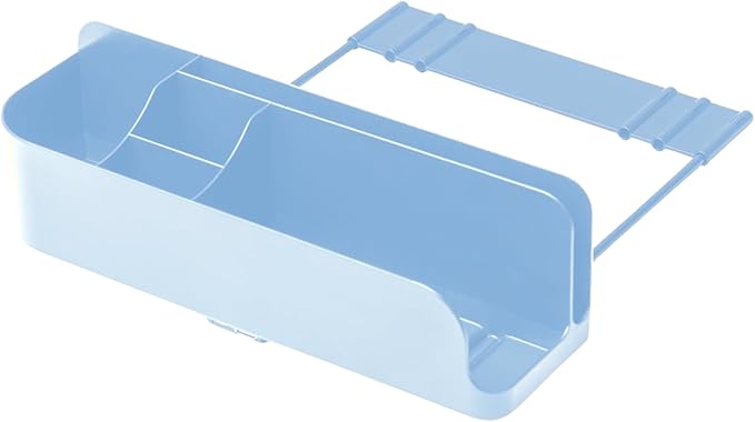 - QUICK & EASY SET UP IN 30 SECONDS: In just 30 seconds, this bedside caddy and bed tray table gives you five different compartments designed to hold it all. Find the perfect home for your 32 oz. water bottle, remote, phone, tablet, and magazines. No tools required! Dimensions: 14.1 x 3.9 X 4.7 inches.