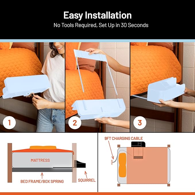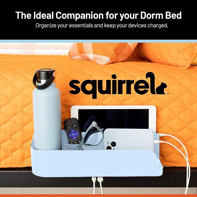 - SMALL SPACE & DORM ROOM FRIENDLY: When you're looking for college essentials, put Squirrel at the top of your list. The Bedside Perch is perfect for small or shared spaces and it's not just for beds! Whether your dorm room needs a bunk bed caddy or your couch needs an organization buddy, we got you covered.