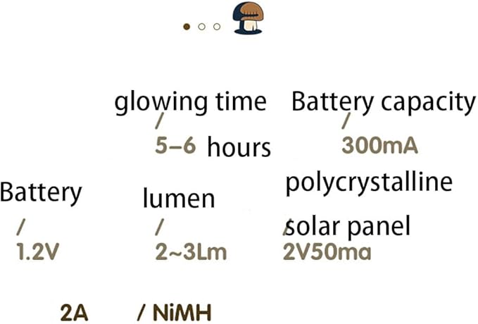 - ECO-FRIENDLY Solar Lights to Brighten up your life -A renewable and clean energy - powered by electricity, converted from solar power during the day - stored in a rechargeable 1. 2V AAA 300mAH Ni-MH Battery - Runs up to 6 hours with a full charge of sun light