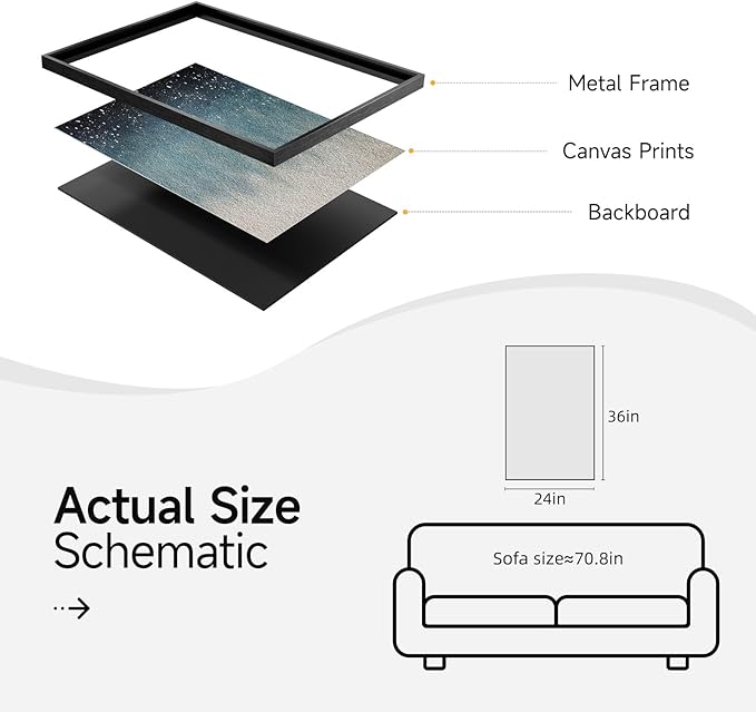 - [Framed Wall Art]: A large framed blue grey abstract canvas wall art, size is 24x36 inches. With a solid, rust-proof and the simple and stylish black frame blends perfectly with a variety of decorative styles