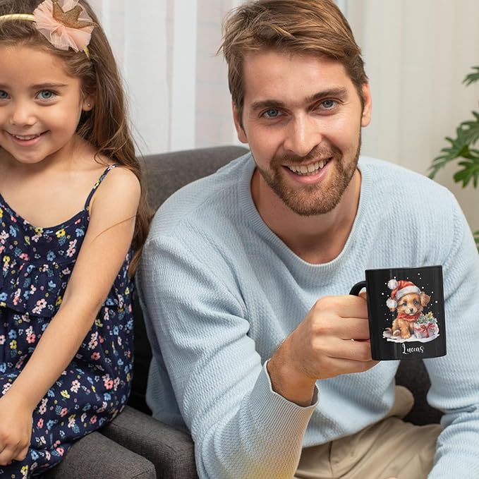 - ๐ UNIQUE DESIGN MUG: Bring holiday joy to any pet lover with this "Personalized Name Xmas Puppy Cup" featuring a cute puppy in a Santa hat design. Click "Customize Now" to add a name, making it a great personalized gift for the holiday season. This black ceramic mug is ideal for sipping warm drinks in cozy winter settings.