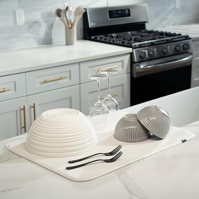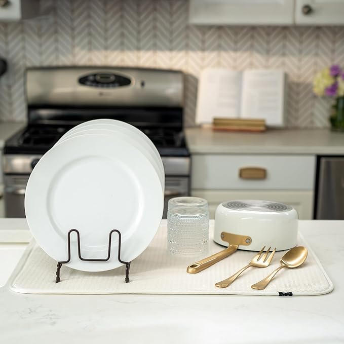 S&T INC. Dish Drying Mat XL, 18” x 24”, Absorbent Microfiber Kitchen Counter Mat, Dish Drying Pad for Dishes, Utensils, Pots and Pans, Extra Large, Cream
