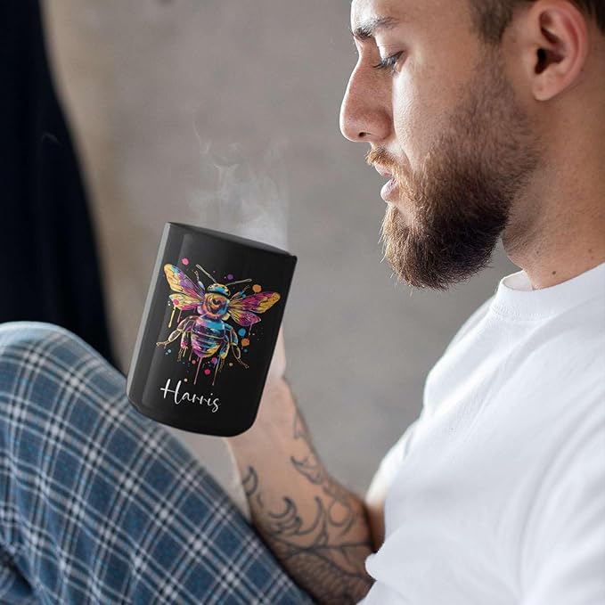 - ๐ NOVELTY DESIGN MUG: Celebrate Christmas with this Personalized Name Bee Black Mug, featuring a custom name and a vibrant bee design. Good as a mug gift for your brother or sister, this colorful ceramic mug is available in 11oz and 15oz sizes. Click 'Customize Now' to create a unique and thoughtful present for any bee and animal lover.