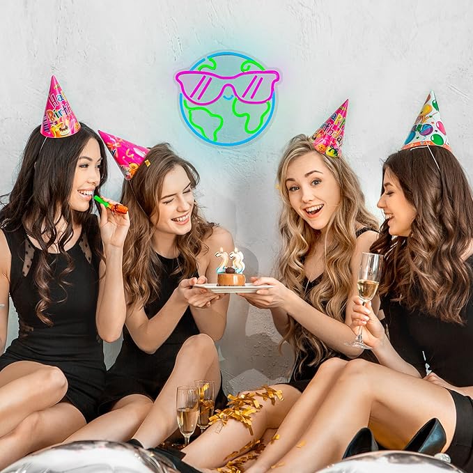 - Perfect Design : Earth neon light is designed with the earth wearing glasses and looks cool. Glasses neon sign emits a colorful glow that adds charm and energy to the room.