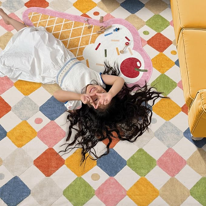 - Vintage Colorful Design: Elevate your home decor with our eye-catching colorful rug, showcasing a delightful diamond lattice splicing pattern. This argyle design brings a sense of playful charm to kids room while adding a energy touch to adult spaces