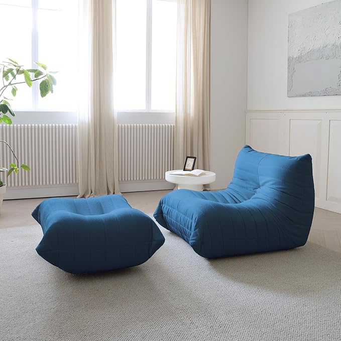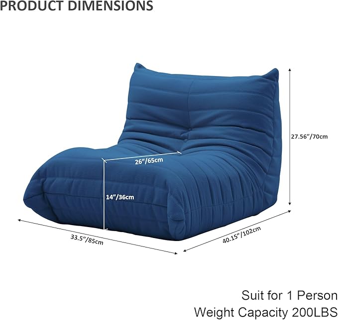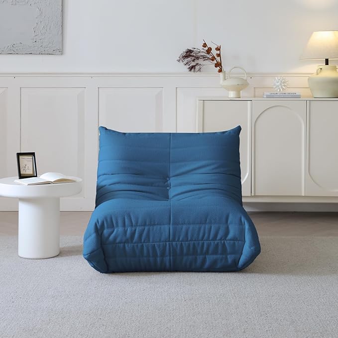 Luxury Sofa Couch Chair, Lazy Floor Seating, Fireside Bean Bag Chair, Ergonomic Tatami Sofa Lounger for Living Room, Bedroom, Office, Single Seat, Blue