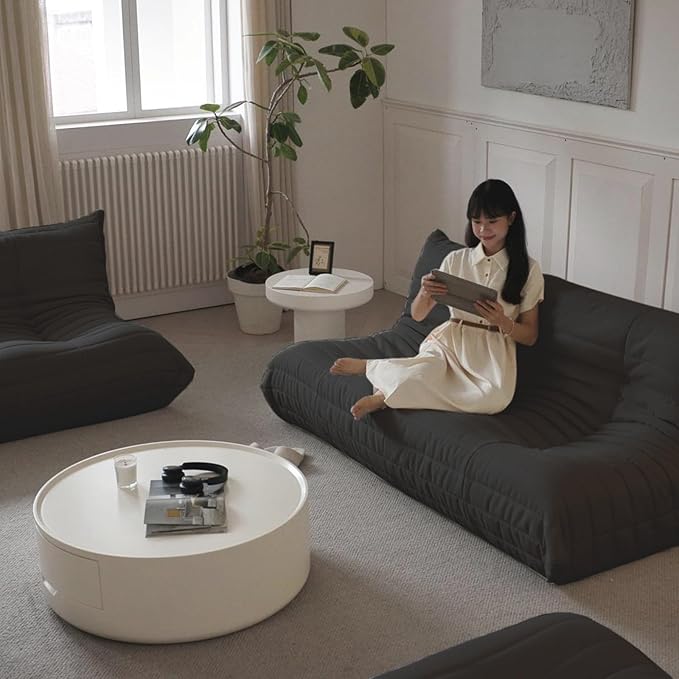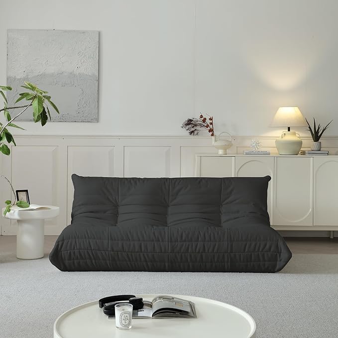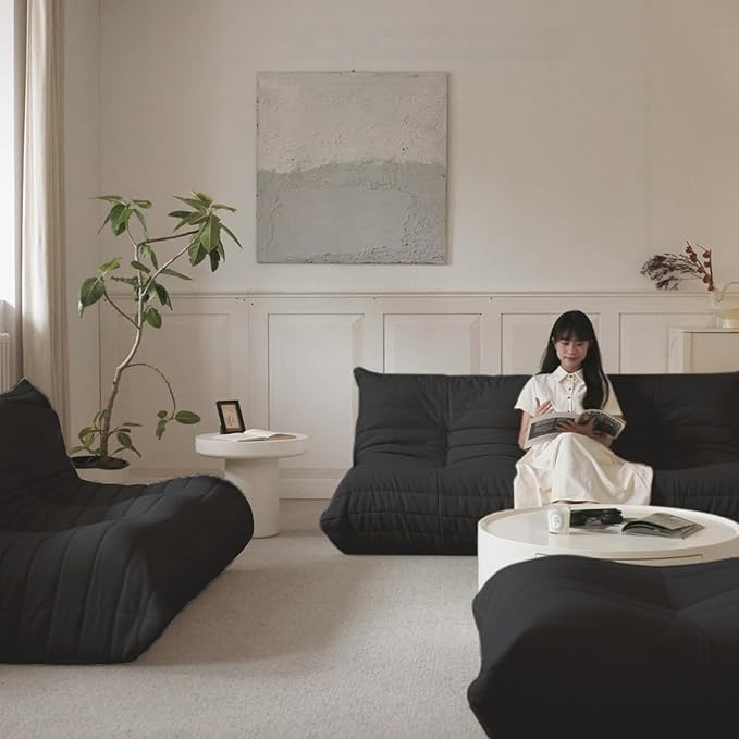 Luxury Sofa Couch Chair, Lazy Floor Seating, Fireside Bean Bag Chair, Ergonomic Tatami Sofa Lounger for Living Room, Bedroom, Office, 3 Seat, Black