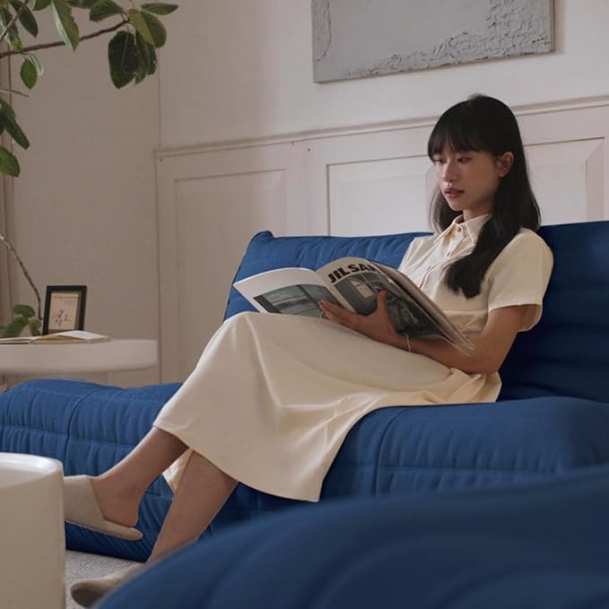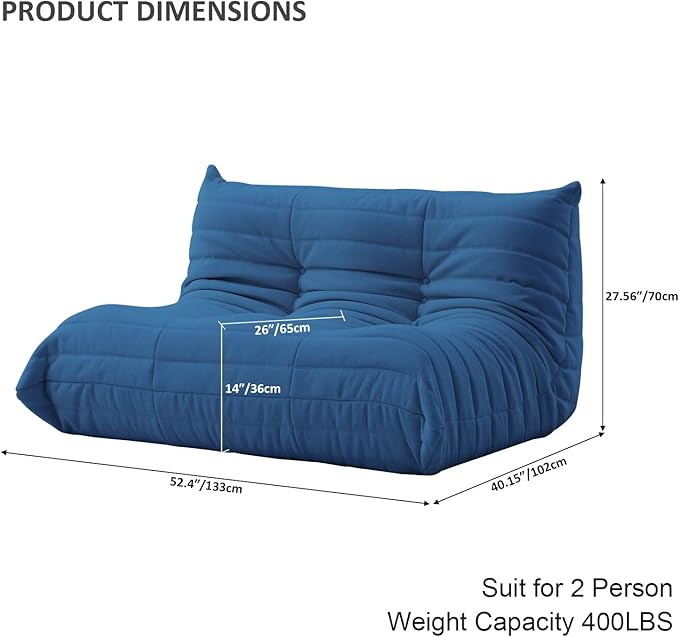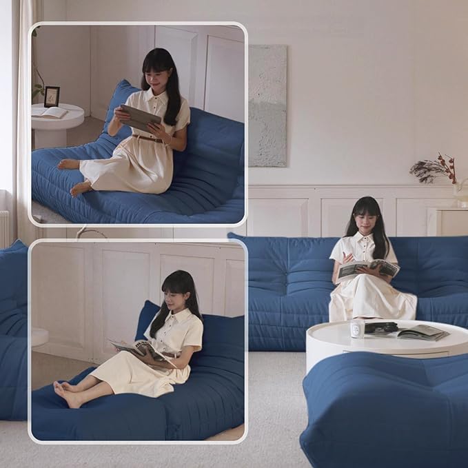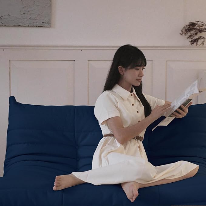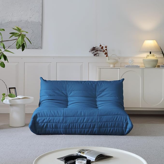 Luxury Sofa Couch Chair, Lazy Floor Seating, Fireside Bean Bag Chair, Ergonomic Tatami Sofa Lounger for Living Room, Bedroom, Office, Loveseat, Blue