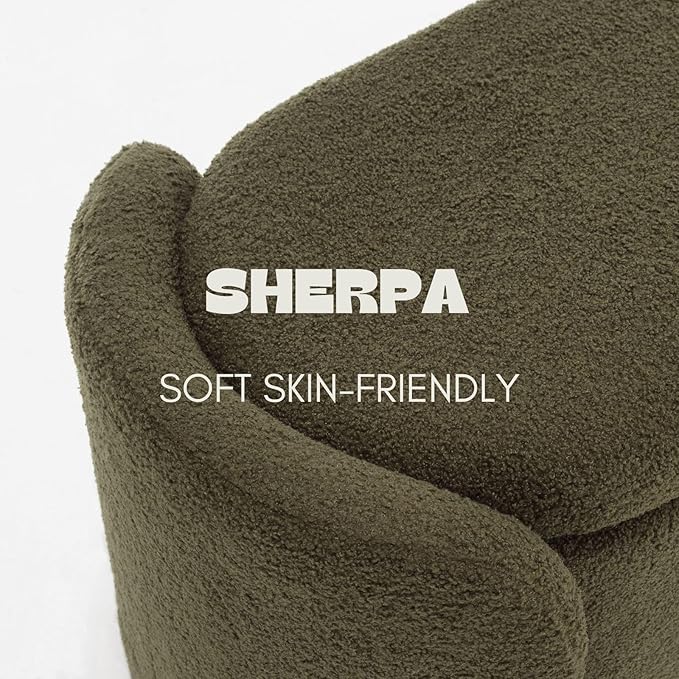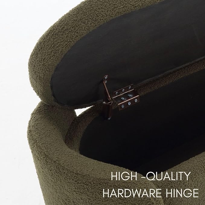 ROCTY Green Boucle Storage Bench - 50" Sherpa End of Bed Ottoman with Seating and Storage for Bedroom, Entryway, Living Room, Vanity or Makeup Room - Teddy Fabric