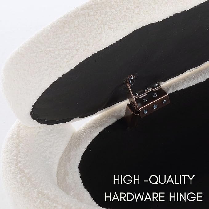 ROCTY White Boucle Storage Bench - 50" Sherpa Ottoman Bench for Bedroom, Entryway, Living Room & Vanity - Teddy Fabric with Storage & Seating