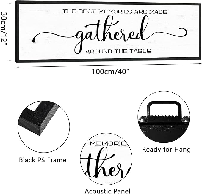 The Best Memories Are Made Gathered Around The Table Wall Decor: Farmhouse Kitchen Wall Art Framed Large Rustic Kitchen Sign Modern Dining Room Wall Decor Hanging Wall Plaques 12"x40"