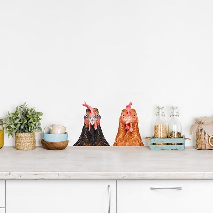 Funny Chicken Wall Stickers Peel and Stick - 2 Hens Heads Window Stickers Decor - Funny Wall Decals Removable for Farmhouse Kitchen Bedroom Door Refrigerator Car