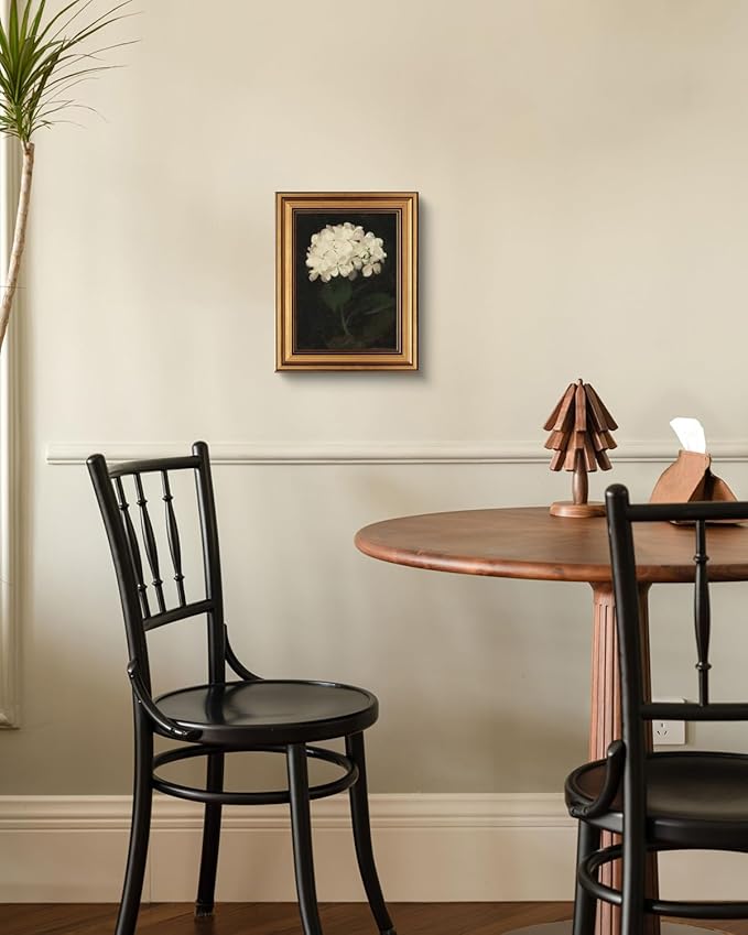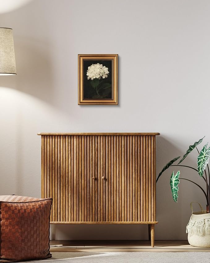 HUARCEY Gold Framed Vintage Wall Art for Living Room, Flowers Painting Canvas Prints Shelf Decor for Kitchen, Aesthetic Bedroom Wall Art, Christmas Gifts for Friends or Family (White Hydrangea 8"x10")