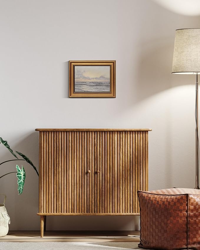 HUARCEY Gold Framed Vintage Wall Art for Living Room, Landscape Painting Prints Shelf Decor for Kitchen, Aesthetic Coastal Bedroom Wall Art, Christmas Gifts for Friends or Family ( Sea or Sky - 8"x10" )