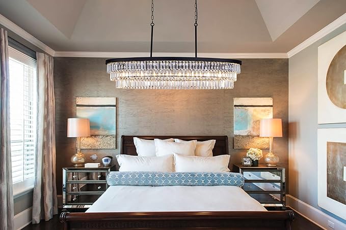 - Black Crystal Chandelier: Increase the sophisticated sense to your room with the modern chandelier, ideal for bedroom, dining room, kitchen island, living room, bar, office, foyer, restaurant and so on