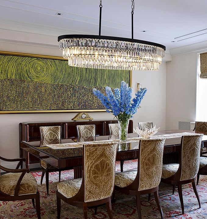 TOCHIC Crystal Chandelier 47 inch, 9 Lights Large Black Crystal Chandeliers for Dining Room, Modern Farmhouse Oval Chandelier Kitchen Island Lighting Fixture for High Ceiling, Living Room, Bar