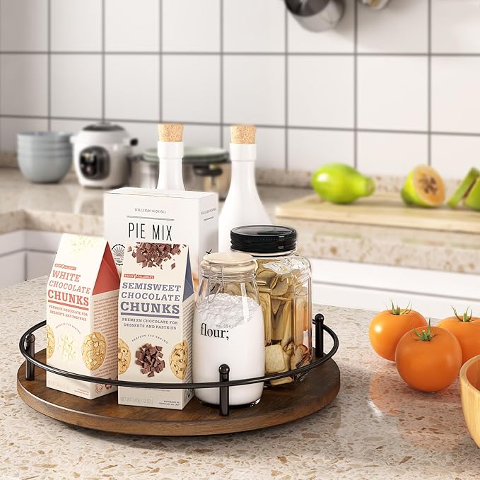 - 【360°Rotation Function】This lazy susan Turntable Organizer rotates 360°very smoothly and this feature works exceptionally well. For example, use it in the kitchen and use the 360°swivel feature to easily get to the condiments, spices, olive oil and other cooking supplies you want.