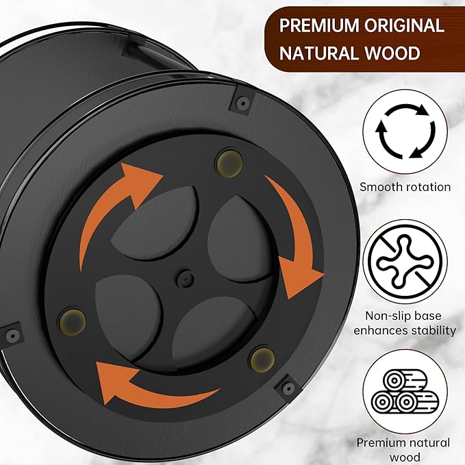 - 1. Stay Organized in Style: Ditch clutter and stay organized with our two-tier turntable Lazy Susan! This beautiful wooden rotating spice rack spinner is perfect for any table top, farmhouse bathroom decor, round decorative tray for your vanity, counter, sink, coffee table, and much more