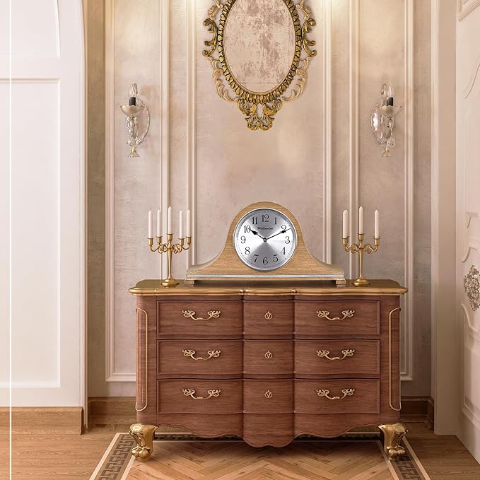 TXL Mantel Clock, Silent Wood Table Clock Battery Operated, Desk Shelf Vintage Clock for Living Room,Home Decor Gift, T20211