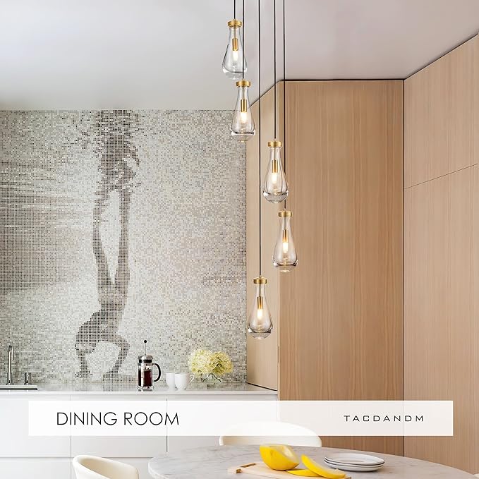 - 【Compatible with Various Bulbs】Glass Pendant Light features compatibility with dimmer, and 3 E12 bulbs base (Bulbs Included). Kitchen Lighting Fixtures will create an enchanting light that illuminates your space with a cosy and warm atmosphere.This is perfect for kitchen islands, living rooms, hallways, foyers, bars, or cafes.